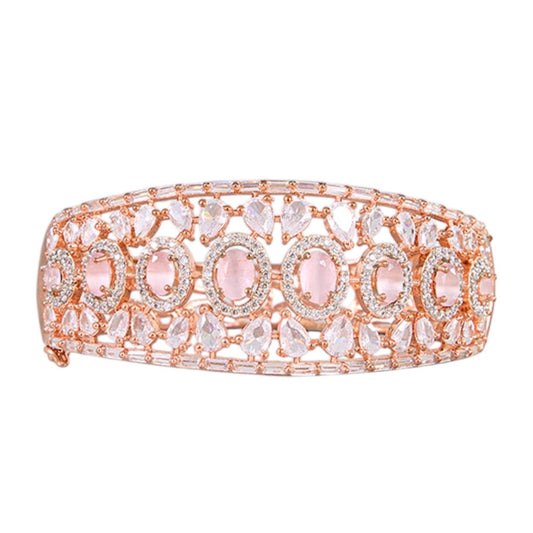 Rose Gold-Plated Pink Stone Bangle with White CZ Accents for Women