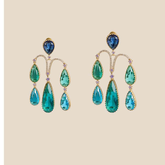 Royal Blue Beaded Choker Necklace Set with Earrings