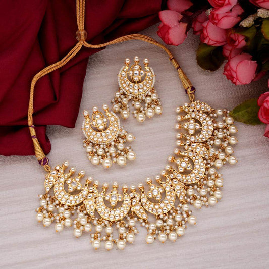 Royal Gold-Plated Kundan & Pearl Choker Necklace Set