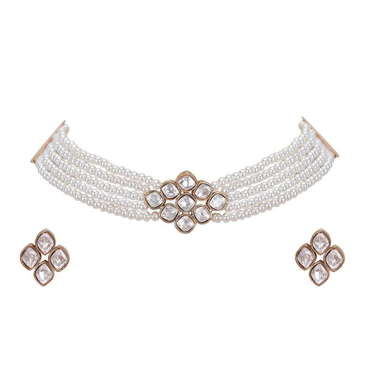 Ruby & Green Beads Kundan Choker Necklace Set with Floral Stud Earrings for Women