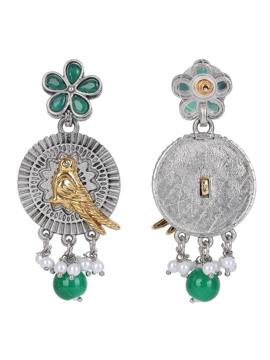 Silver-Plated Stone Drop Earrings with Elegant Detailing