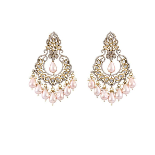 Sophisticated Gold-Colored Kundan Chandbali Earrings with Pearl Droplets