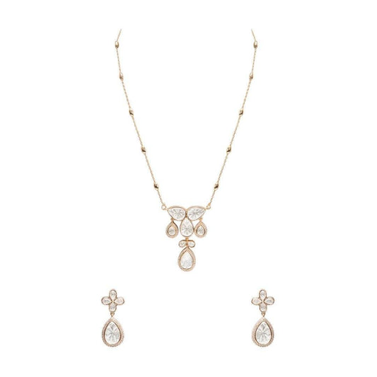 Sophisticated Polki Crystal Drop Necklace Set with Flower Stud Earrings