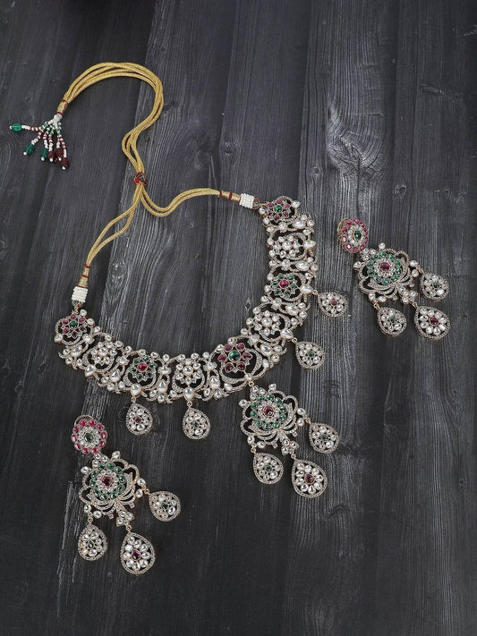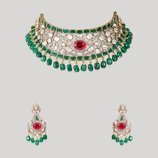 Traditional Green & Red Kundan Choker Necklace Set for Women