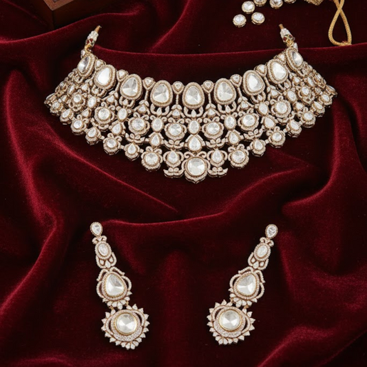 Traditional Kundan Choker Necklace Set with Earrings & Maang Tikka for Women