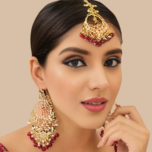 Bridal Kundan & Pearl Chandbali Earrings with Maang Tikka Set