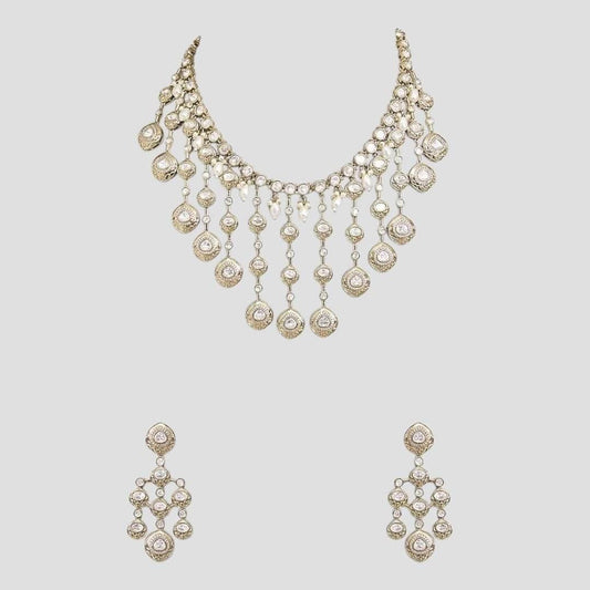 Bridal Kundan Polki Necklace Set with Earrings