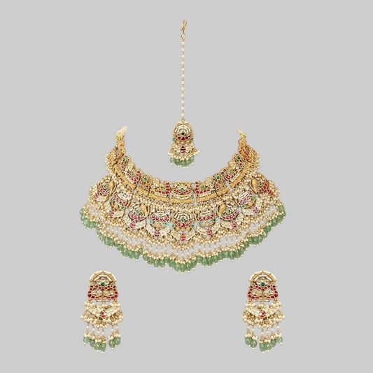 Bridal Kundan Polki Choker Necklace Set with Maang Tikka & Earrings