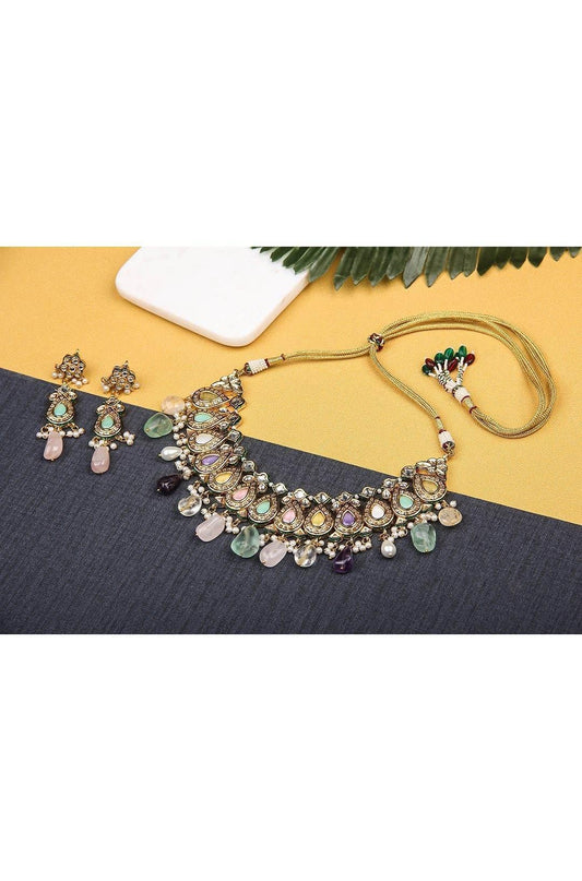 Brilliant Gold Plated Bead & Kundan Polki Necklace Set