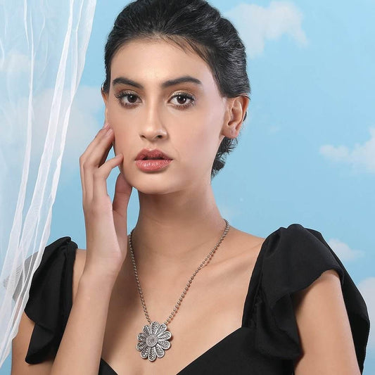 Buy Aviana Beautiful Silver-Tone Floral Pendant Women's Necklace