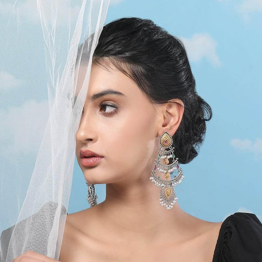 Buy Aviana Boho-Style Silver-Tone Round Mirror Work Earrings for Ladies