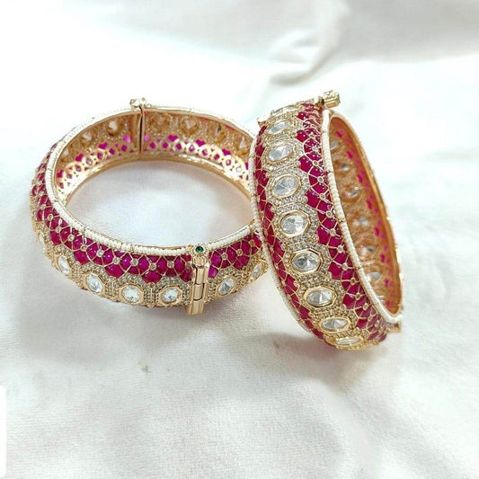Gold-Plated Pink Meenakari Kundan Studded Openable Bangles for Women