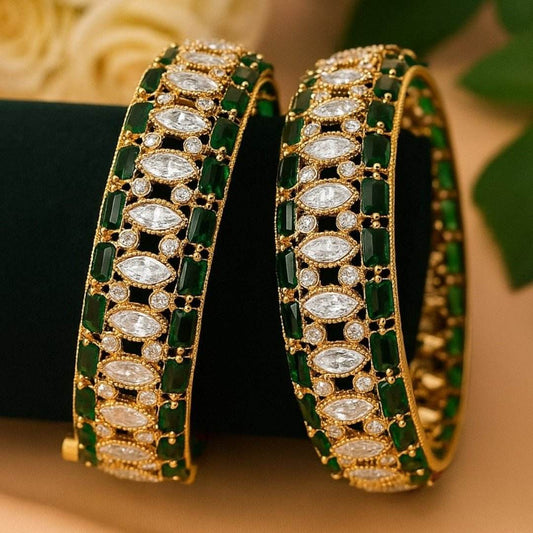Luxury Green & White Stone Studded Gold-Plated Designer Bangles for Women