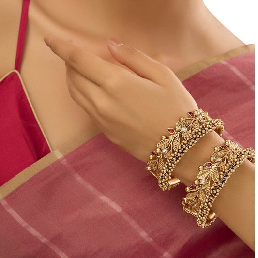 Antique Gold Plated Bangle with Elegant Ruby Stones