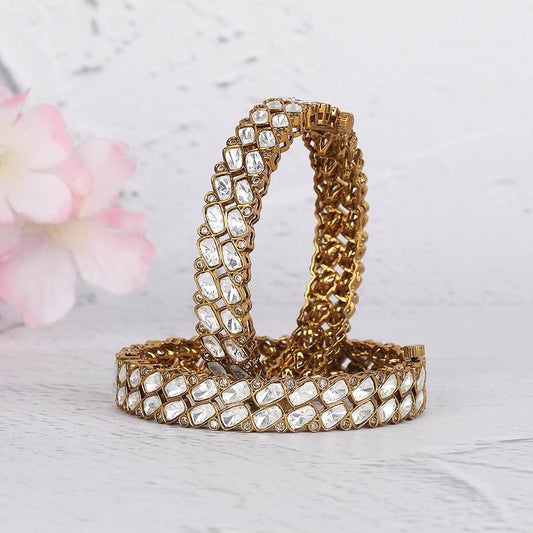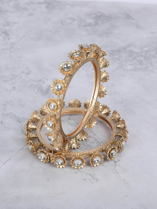 Gold Finish Pearl & Kundan Polki Bangles (Set of 2)