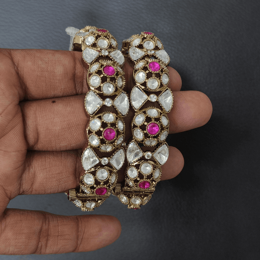 Gold-Plated Kundan & Ruby Stone Designer Bangles for Women