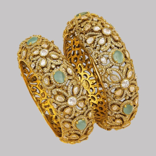 Luxury Green & White Stone Studded Gold-Plated Designer Bangles for Women
