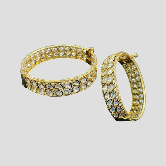 Elegant Gold-Plated Tear-Drop Polki Stone Bangles