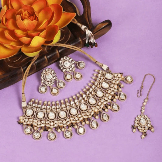 Kundan Polki Choker Necklace Set with Earrings and Maangtikka