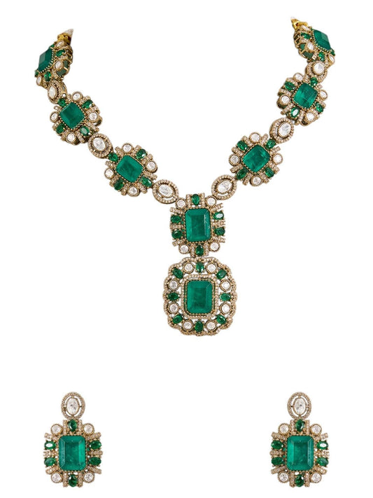 Gold Finish Kundan Polki & Emerald Stone Statement Necklace Set
