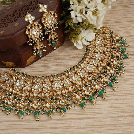 Resplendent Kundan Necklace Set with Emerald Accents