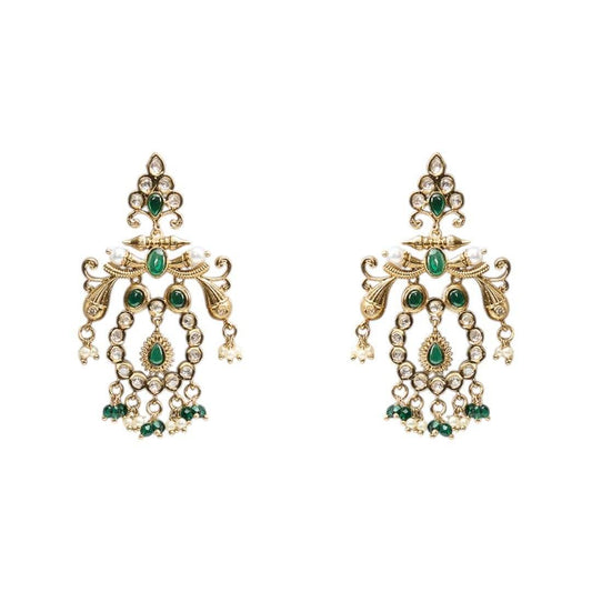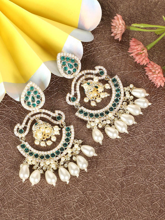 Regal Gold-Plated Emerald Green & Pearl Chandbali Earrings – Classic Statement Jewelry