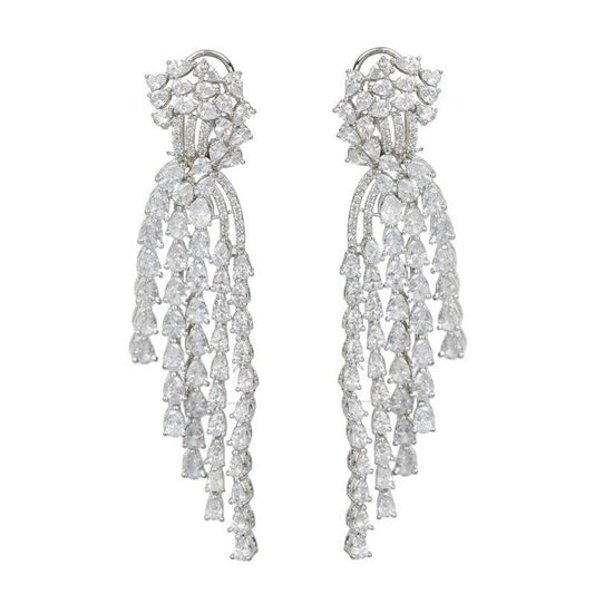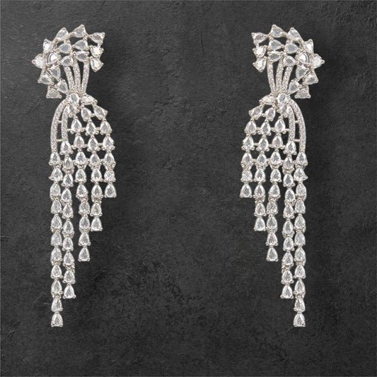 Glamorous Silver-Toned Crystal Dangler Earrings with Cascading Chandelier Earrings
