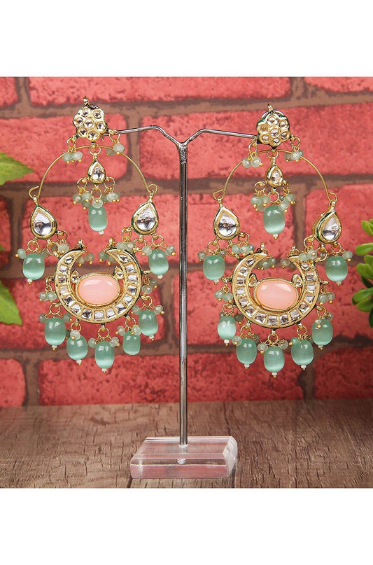 Gold-Plated Kundan Earrings with Pearl Dangling