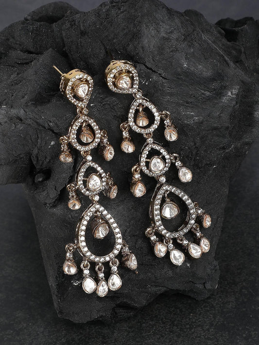Gold Finish Kundan Polki Dangler Earrings
