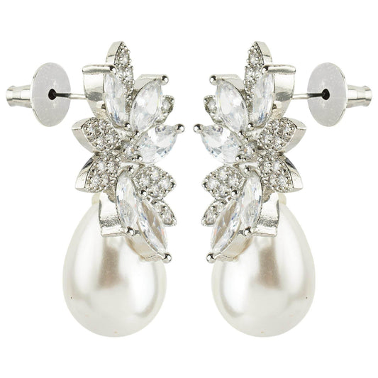 Alluring Rhodium Plated American Diamond Drop Earrings