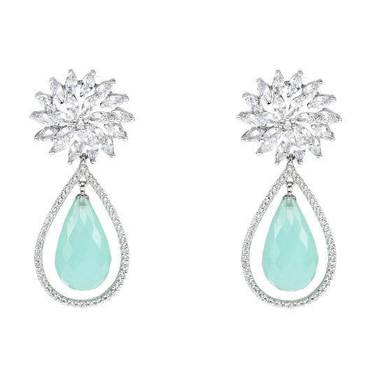 Exquisite Diamante Drop Earrings with Aqua Teardrop