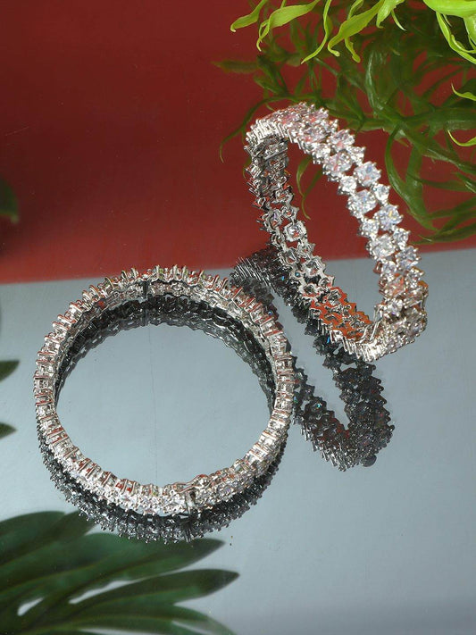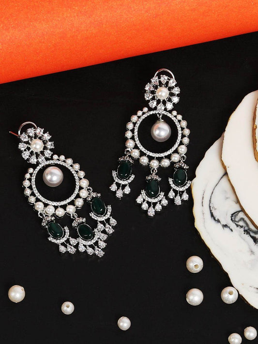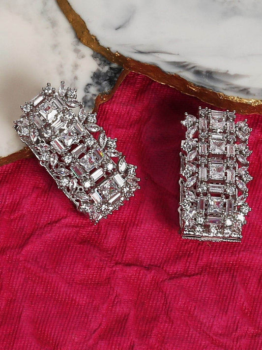 Alluring Rhodium Plated American Diamond Stud Earrings