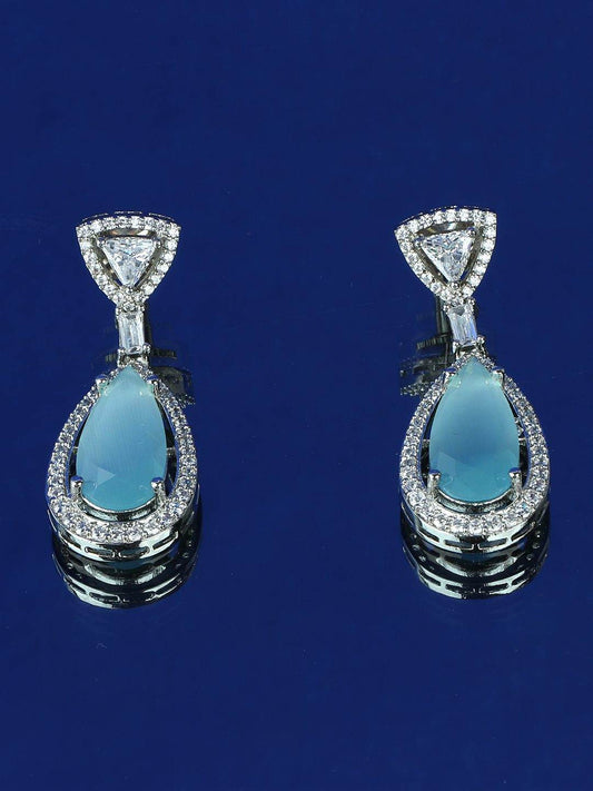 Moissanite Teardrop Drop Earrings with Aqua Blue Stone