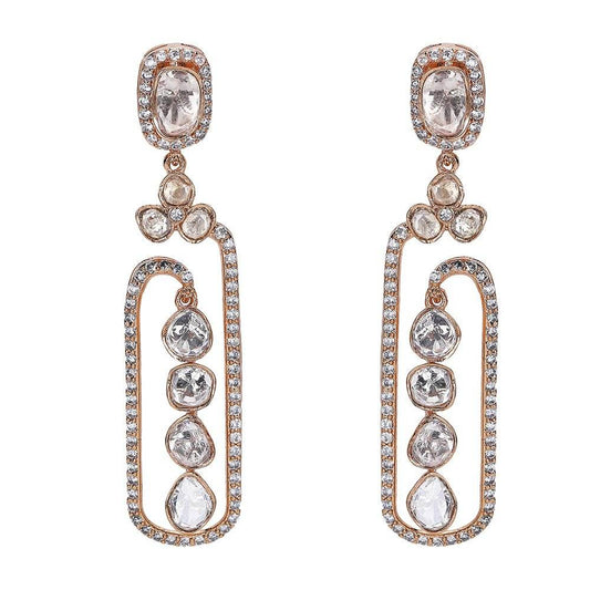 Elegant Moissanite Dangle Earrings with Rose Gold Finish