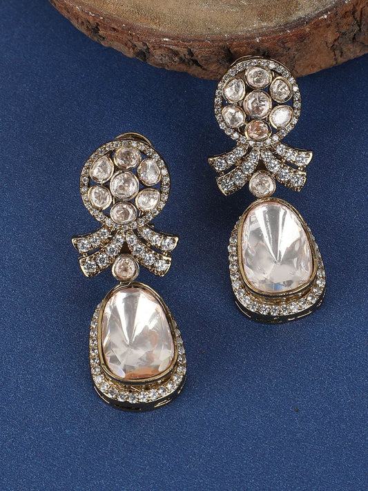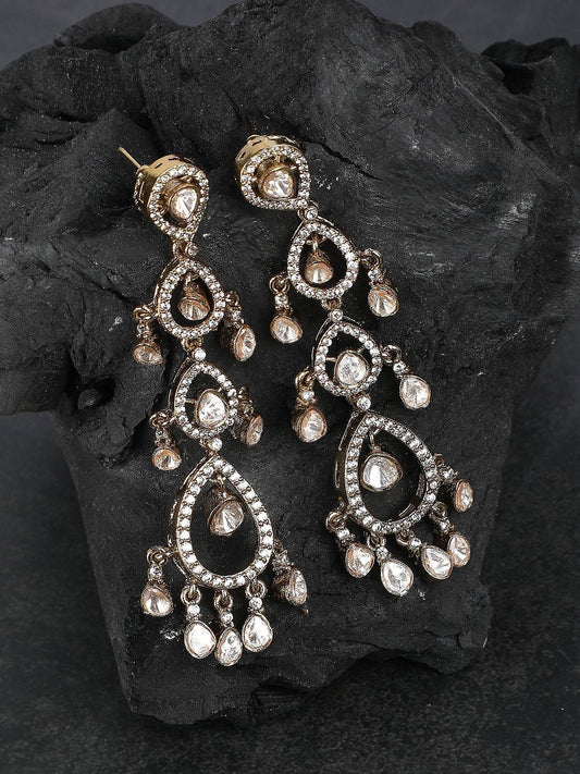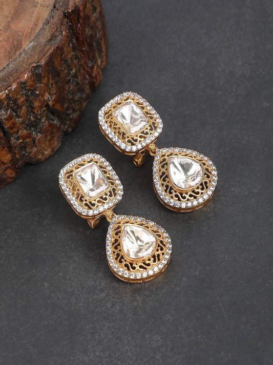 Luxury Gold-Plated Chandelier Earrings with Kundan Detailing