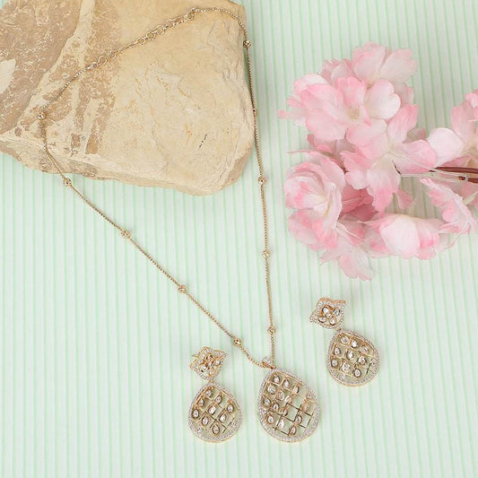 Gold Plated Kundan Pendant Bridal Necklace Set