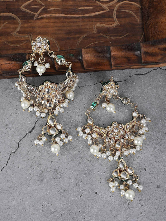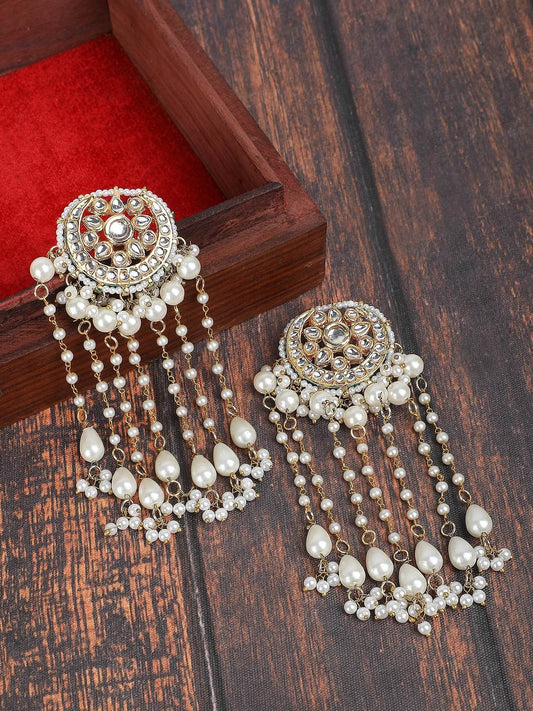 Pearl and Kundan Chandelier Earrings with Gold Plating