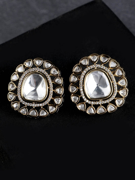 22KT Gold Plated Kundan Classic Grey Ring