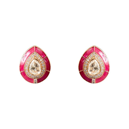 Elegantly Ruby Red Stud Earrings with Gold and Crystal Accents
