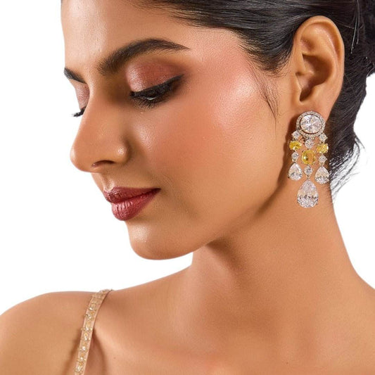 Luxury Crystal and Yellow Stone Statement Drop Earrings