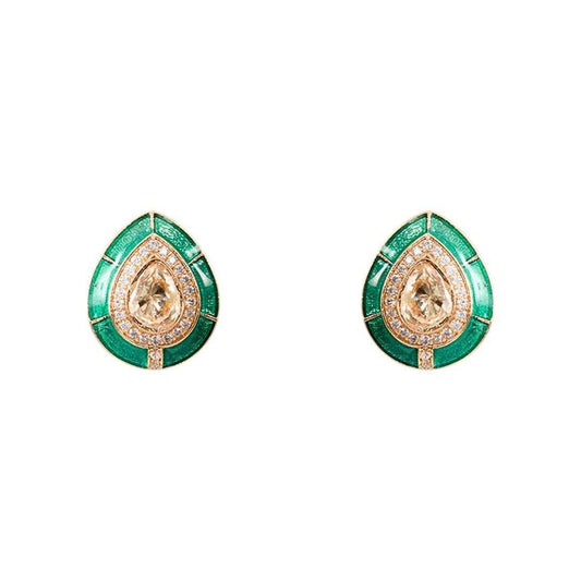 Sophisticated Emerald Green Stud Earrings with Gold and Crystal Accents