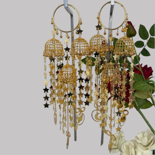 Gold-Plated Punjabi Bridal Kaleere with Multi-Dome & Star Danglers