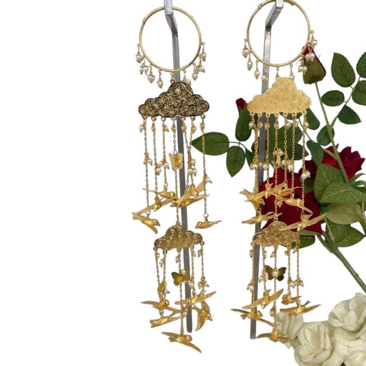 Luxury Gold-Plated Cloud & Bird Kaleere with Pearl Drops