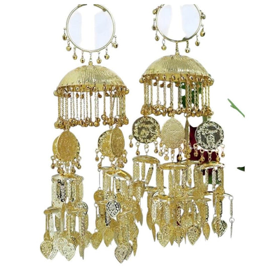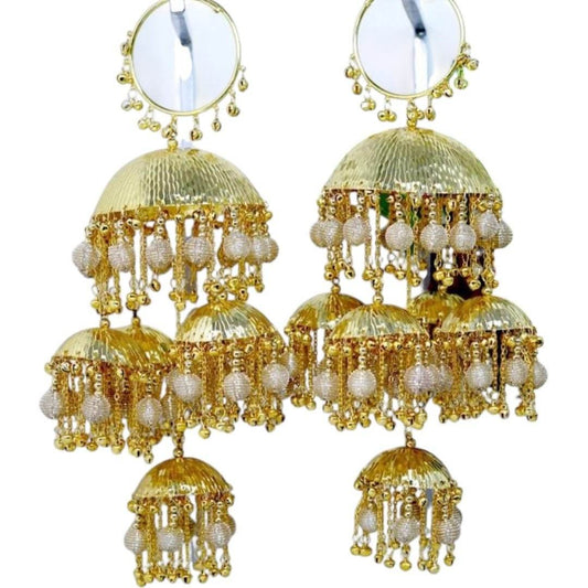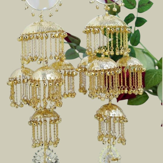 Gold Plated Bridal Kaleera with Dome-Shaped Jhumkas & Pearl Tassels for Women