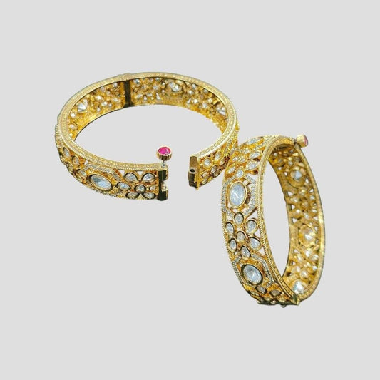 Premium Gold-Plated Openable Kundan Bangles with White Enamel Detailing for Women