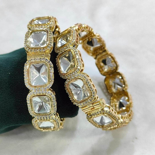 Designer Gold-Plated Square Kundan Bangles with Diamond-Cut Mirror Stones