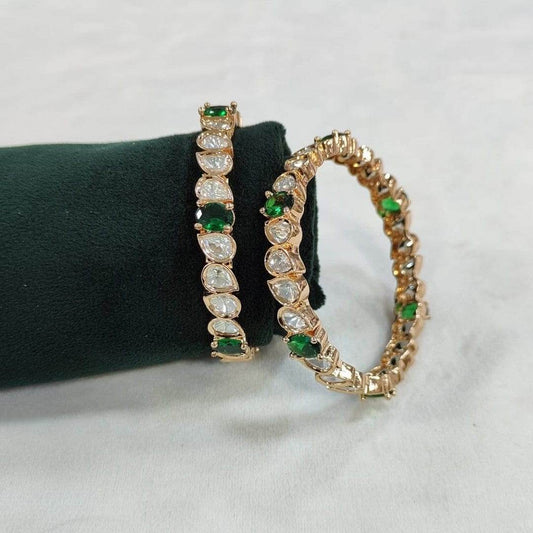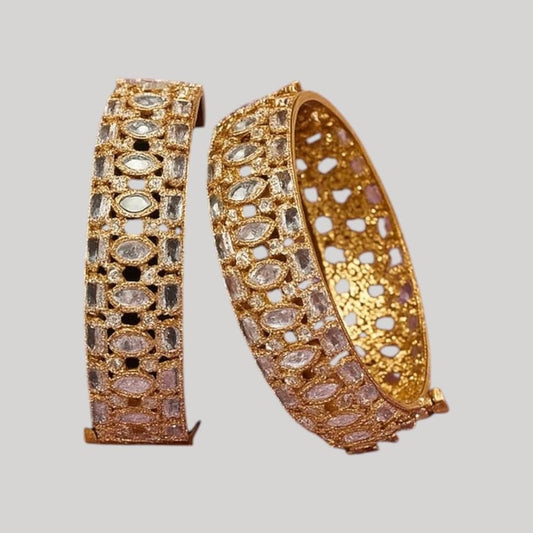 Gold-Plated Designer Bangles with Oval & Round White CZ Stones