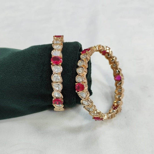 Gold-Plated Bangles with Ruby Red & White CZ Stones