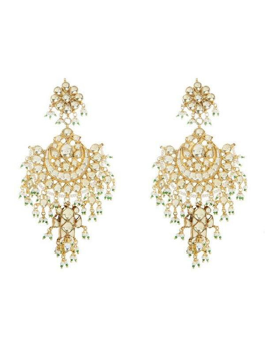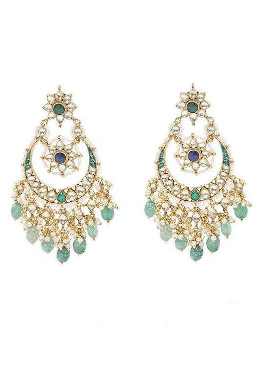 Gold Plated Kundan Chandbaali Earrings with Green Drops