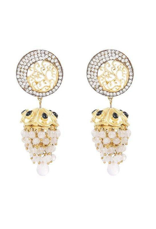 Gold-Plated Moissanite Jhumka Earrings with Pearl Drops